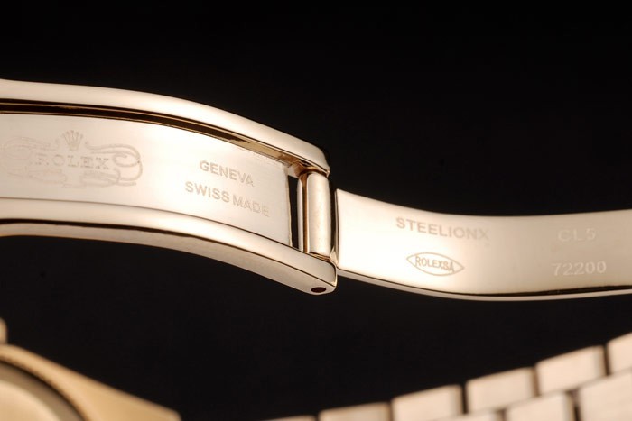 Die Details der Rolex Datejust sind atemberaubend. Das Zifferblatt wird von einem dreieckigen, mit Diamanten besetzten Lünette umrahmt und bietet einen luxuriösen Blickfang. Der 34 x 27 mm große Edelstahlfall in 18k Gelbgold, kombiniert mit einem ebenfalls gelbgoldplattierten Edelstahlarmband, unterstreicht den Glamour dieser Uhr. Der versteckte Clou mit eingraviertem Rolex-Logo macht das Tragen dieser Uhr zu einem außergewöhnlichen Erlebnis. Die Dicke des Gehäuses von 13 mm sorgt zudem für eine angenehme Passform am Handgelenk.